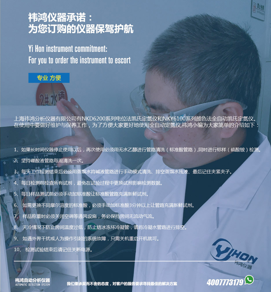 祎鴻儀器是專業研發凱氏定氮儀、紅外消化爐等測定蛋白質儀器的公司,提供化學試驗室蛋白質分析測試方案的凱氏定氮儀全套解決專家,聯系電話:17717068667 王經理